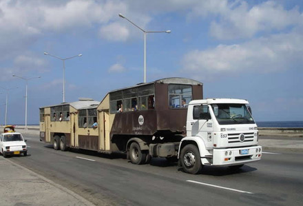 Ο,ΤΙ ΝΑ 'ΝΑΙ #περίεργα Στην Κούβα οι συγκοινωνίες έχουν κάτι από… νταλίκα Δείτε πώς είναι τα λεωφορεία εκεί 29·09·2011 16:31 Δείτε κι άλλα παράξενα από όλο τον κόσμο εδώ.