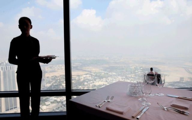Οι παρακάτω φωτογραφίες προέρχονται από το ψηλότερο εστιατόριο του κόσμου, το Atmosphere, το οποίο βρίσκεται στο επίσης ψηλότερο κτίριο της Γης, τον πύργο Burj Khalifa, στο Dubai.