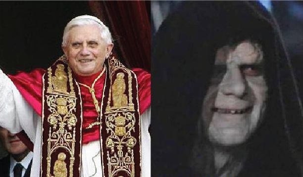 Ο Άρχοντας των Σιθ του «Star Wars» είναι φτυστός ο πάπας Βενέδικτος! Ο Βενέδικτος εξελέγη Πάπας το 2005 την ίδια χρονιά που βγήκε στους κινηματογράφους το «Star Wars Episode 3» οπότε και ο άρχοντας των Σιθ πήρε την αποκρουστική μορφή του.