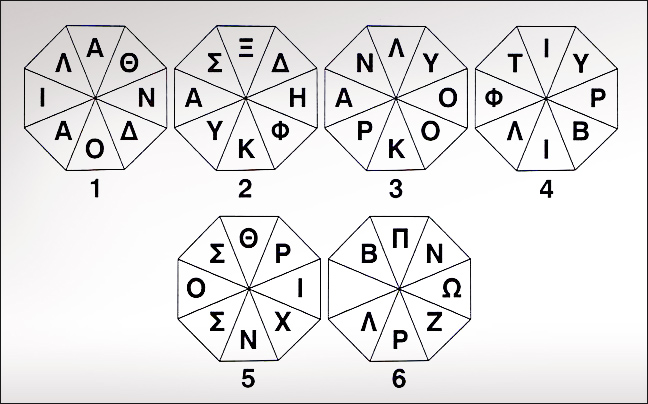Το Ο. Διαβάζοντας τα γράμματα εναλλάξ (διαβάζουμε ένα – αφήνουμε ένα), σύμφωνα με τη φορά των δεικτών του ρολογιού και ξεκινώντας από το κεντρικό επάνω γράμμα του πρώτου πολυγώνου, διαβάζουμε τρεις εποχές του έτους: ΑΝΟΙΞΗ, ΚΑΛΟΚΑΙΡΙ, ΦΘΙΝΟΠΩΡΟ.
