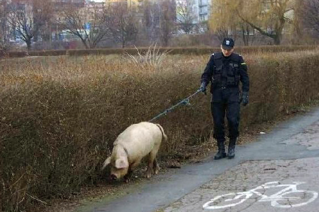 Μια βόλτα στο πάρκο είναι σίγουρα το καλύτερο φινάλε, μιας δύσκολης ημέρας. Βλέποντας βέβαια, την εικόνα μας δημιουργούνται πολλές σκέψεις. Μία εξ αυτών είναι, μήπως… τέρμα πλέον τα εκπαιδευμένα σκυλιά της αστυνομίας κι από εδώ και πέρα θα εκπαιδεύονται γουρούνια;