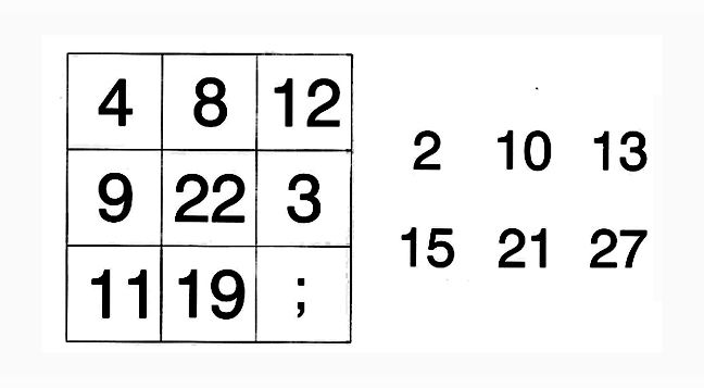 Είναι ο αριθμός 15. Όταν γράφουμε τους αριθμούς που βρίσκονται στην ίδια γραμμή σε λατινική μορφή, ο συνολικός αριθμός των ευθυγράμμων τμημάτων που χρησιμοποιείται πρέπει να είναι 12.