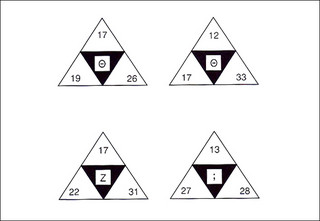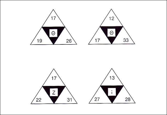 Στο κέντρο του κάθε τριγώνου γράφουμε το γράμμα της αλφαβήτου που αντιστοιχεί στο δεύτερο ψηφίο του αριθμού του τελικού αποτελέσματος.