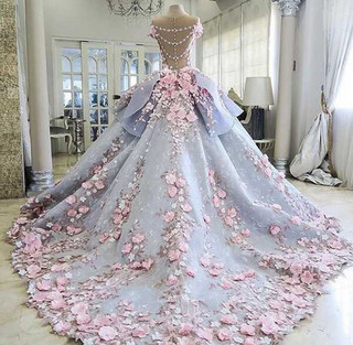 Η σχεδιάστρια για να δημιουργήσει τον φλοράλ όγκο, έφτιαξε κάθε άνθος ξεχωριστά και τα κόλλησε στο φόρεμα. Επίσης, υπάρχει μια πραγματική ζαχαρένια πέρλα στο κέντρο κάθε λουλουδιού!