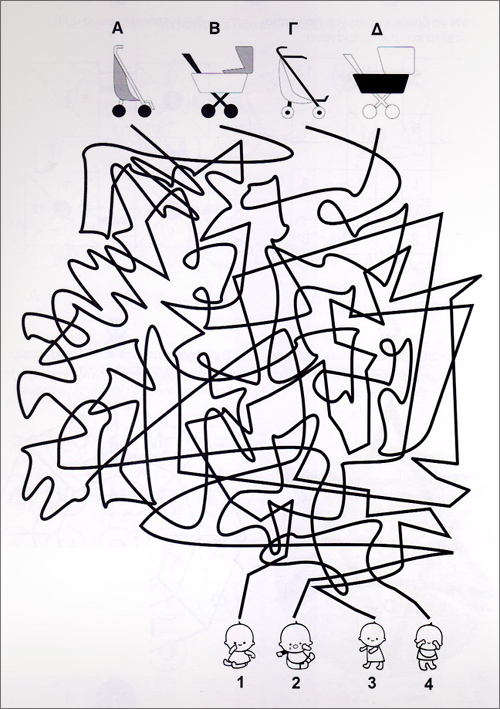 Μπορείτε να βρείτε ποιο καρότσι αντιστοιχεί σε κάθε μωρό; Λύση: Α-2, Β-1, Γ-4, Δ-3