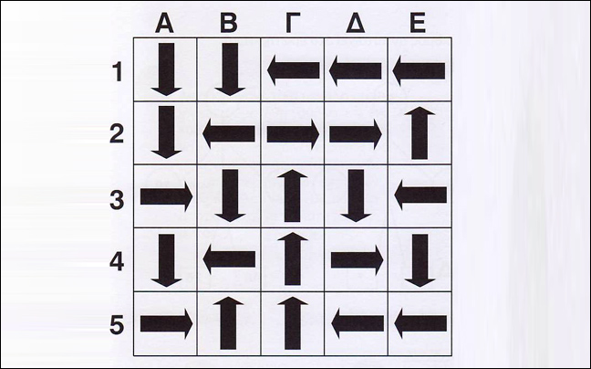 Ξεκινώντας από ένα συγκεκριμένο τετράγωνο και ακολουθώντας τα βέλη θα πρέπει να μπορέσετε να διασχίσετε όλα τα τετράγωνα του πίνακα εκτός από ένα.