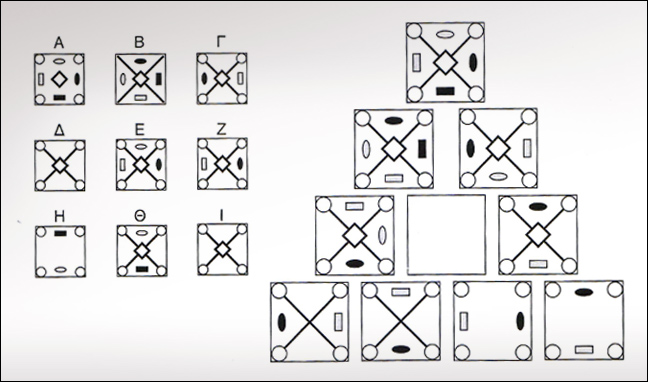 Τοποθετήστε το κατάλληλο τετράγωνο στην κενή θέση, ώστε να ολοκληρωθεί η πυραμίδα.