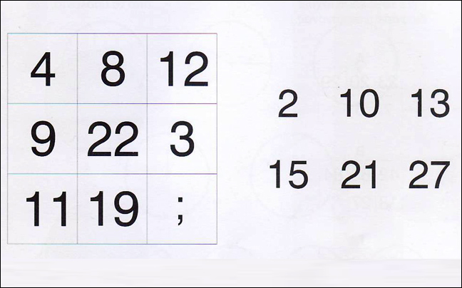 Είναι ο αριθμός 15. Όταν γράφουμε τους αριθμούς που βρίσκονται στην ίδια γραμμή σε λατινική μορφή, ο αριθμός των ευθύγραμμων τμημάτων που χρησιμοποιείται είναι δώδεκα.