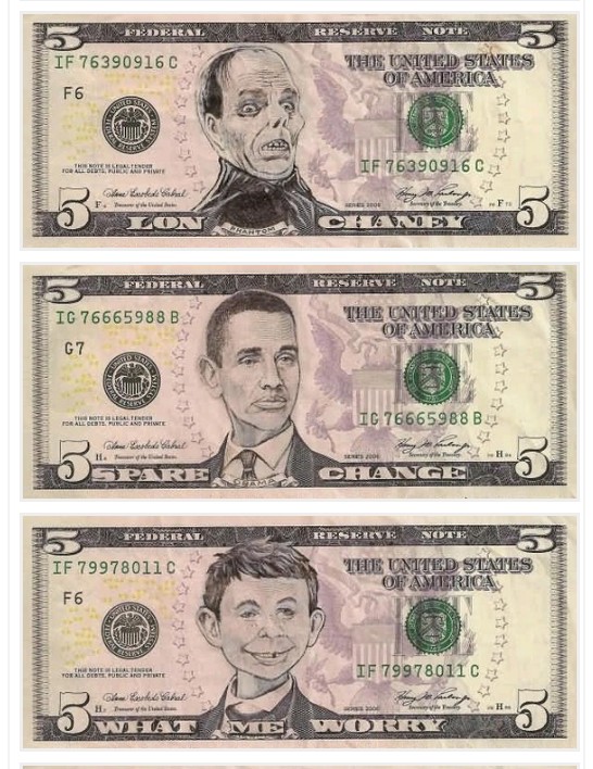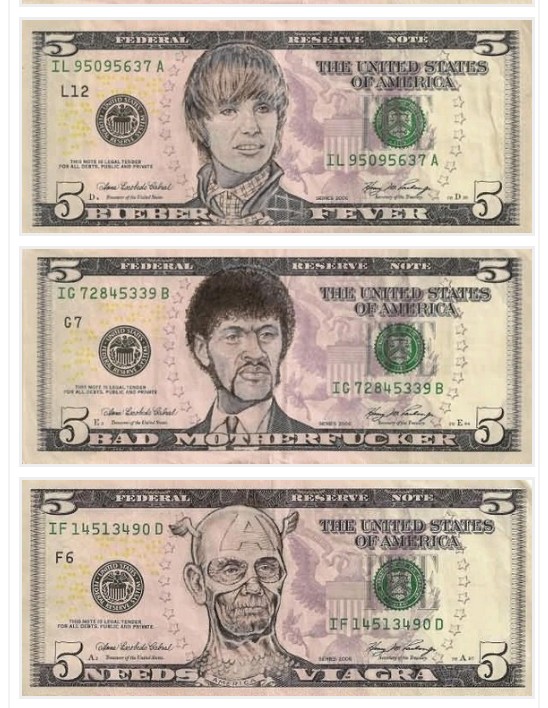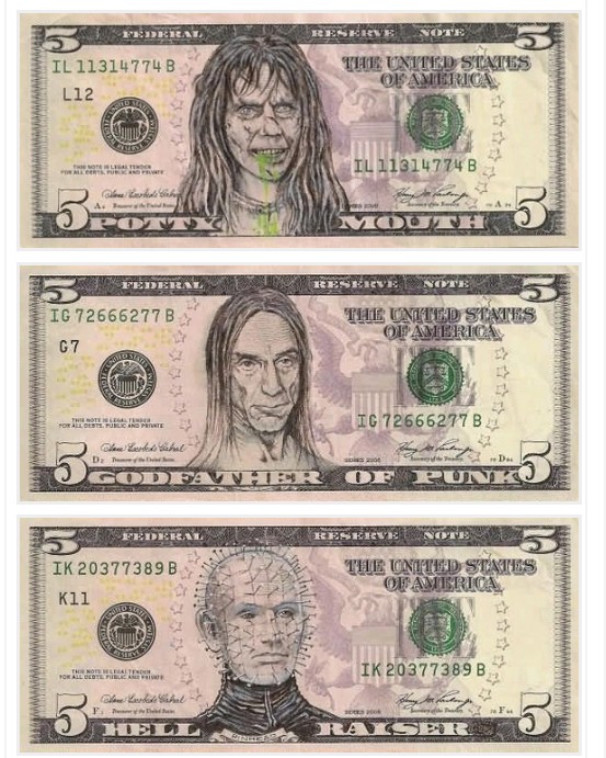 Οι James Charles και Akira Beard ειδικεύονται στο να… μεταποιούν χαρτονομίσματα. Η τέχνη τους έχει αρκετή δόση χιούμορ. Κι εδώ είναι μερικές χαρακτηριστικές δουλειές τους.