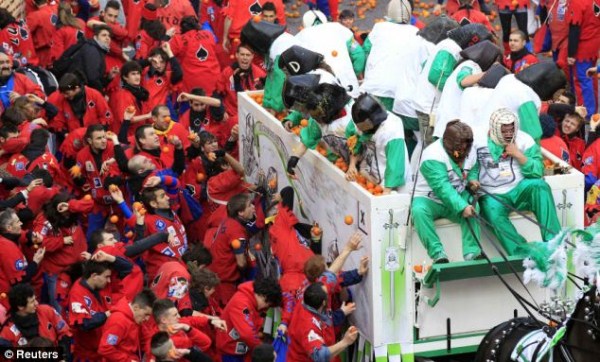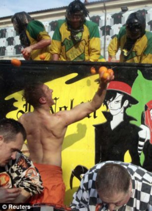 Όπως κάθε Φεβρουάριο έτσι και φέτος, η Ivrea, πολή που βρίσκεται στην βόρεια Ιταλία, διοργάνωσε το τριήμερο φεστιβάλ «μάχη των πορτοκαλιών».