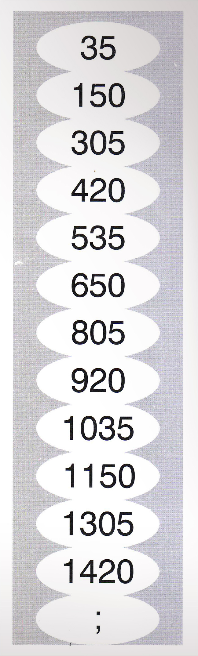 Συνεχίζει με τον αριθμό 1535.Οι αριθμοί δείχνουν ώρες σε ένα ρολόι, αλλά η κάθε ώρα διαφέρει από την προηγούμενη 75 λεπτά.