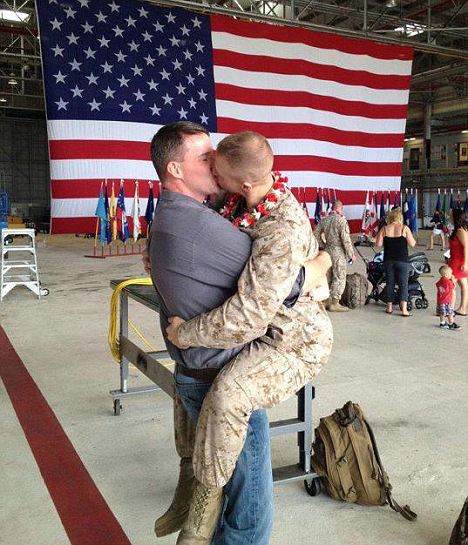 Το πρώτο πράγμα που έκανε επιστρέφοντας στην πατρίδα ο στρατιωτικός των αμερικανικών ενόπλων δυνάμεων, Brandon Morgan, ήταν να ανταλλάξει ένα φιλί με τον άνθρωπό του.