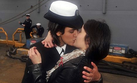 Βέβαια, η πρώτη φορά που ζευγάρι ομοφυλόφιλων στρατιωτικών στις ΗΠΑ αντάλλαξαν δημοσίως φιλί, ήταν τον προηγούμενο Δεκέμβρη, με πρωταγωνίστριες δύο γυναίκες που υπηρετούν στο ναυτικό: