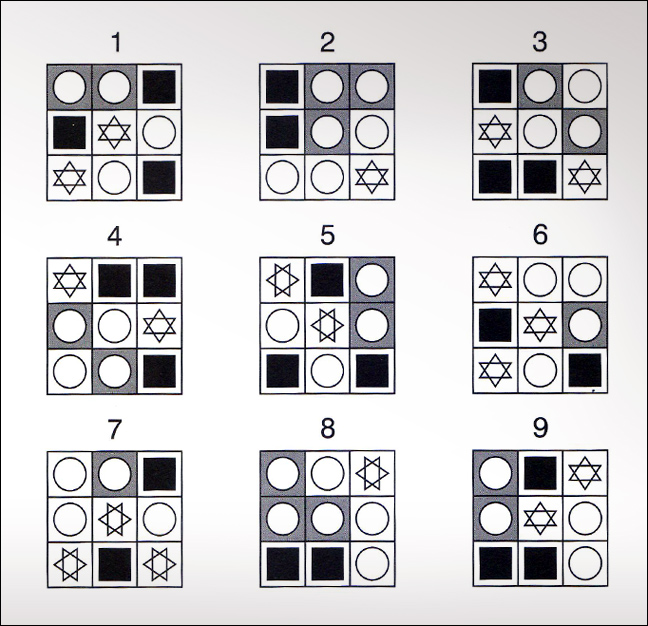 Τα τετράγωνα 1 και 5 είναι ίδια καθώς και τα τετράγωνα 2 και 8, 3 και 4 και τέλος τα 6 και 7.