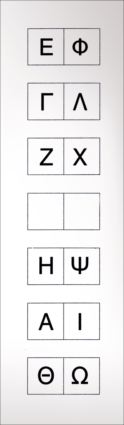 Μετακινούμαστε προς τα κάτω στην πρώτη στήλη και προς τα πάνω στη δεύτερη στήλη. Πηγαίνουμε πίσω δύο γράμματα, προχωράμε μπροστά τρία γράμματα, πίσω τέσσερα, μπροστά πέντε, πίσω έξι κ.λ.π.