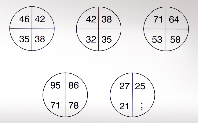 Ξεκινάμε από το πάνω αριστερό τέταρτο και κινούμαστε δεξιόστροφα. Αφαιρούμε κάθε φορά από τον αριθμό το ψηφίο των δεκάδων του.