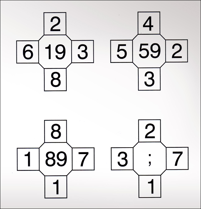 Σχηματίζουμε ένα αριθμό αν πάρουμε τον πάνω και τον κάτω αριθμό, ομοίως αν πάρουμε τον δεξ΄λι και τον αριστερό αριθμό.