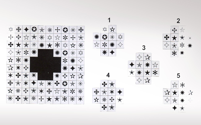 Το σχήμα 3. Ξεκινάμε από την πάνω αριστερή κορυφή και κινούμαστε διαγωνίως α[‘π τα αριστερά προς τα δεξιά και από κάτω προς τα πάνω. Τα σύμβολα εμφανίζονται κατά επανάληψη με την ίδια σειρά.