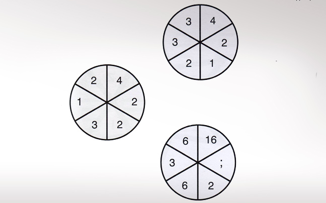 Πολλαπλασιάζουμε τα νούμερα που βρίσκονται στα αντίστοιχα τμήματα των δύο πρώτων κύκλων και έτσι προκύπτει ο τρίτος.