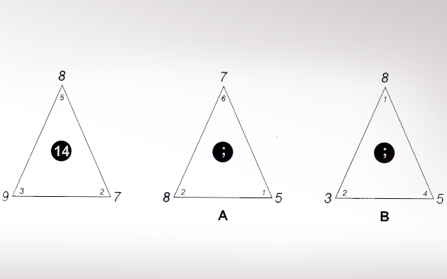 Στο τρίγωνο Α έχουμε τον αριθμό 11 και στο τρίγωνο Β τον αριθμό 9.