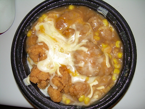 Ένα μπολ με λιωμένα τυριά, τηγανιτό κοτόπουλο, μπέικον, καλαμπόκι μόλις 31 γραμμάρια αλλά με 690 θερμίδες.