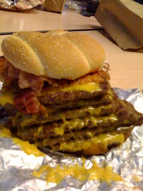 Burger με τριπλό μπιφτέκι λιωμένα τυριά, και μπόλικο μπέικον. Αμέτρητες θερμίδες…