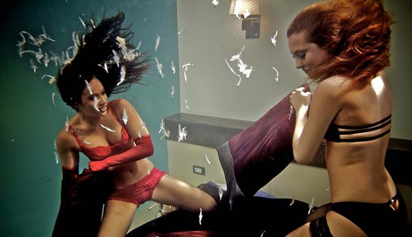 Η ιδέα έγινε πράξη και έτσι δημιουργήθηκε ο πρώτος υποβρύχιος μαξιλαροπόλεμος. «Στήσαμε ένα… υπνοδωμάτιο μέσα σε μια μικρή πισίνα και ξεκινήσαμε τις δοκιμές. Οι κοπέλες έπρεπε να κρατούν αρκετή ώρα την αναπνοή τους και για κάθε λήψη χρειάστηκε αρκετός χρόνος. Τραβούσαμε κάθε σκηνή ξανά και ξανά μέχρι να πετύχουμε το ιδανικό αποτέλεσμα. Είμαστε πολύ περήφανοι!», λέει ο υπεύθυνος της εταιρείας.