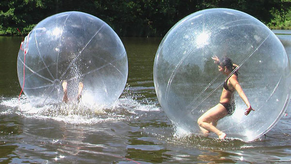 Ταξίδι πάνω στο νερό μέσα σε μια πλαστική μπάλα! Ο μοναδικός τρόπος για να περπατήσετε στην επιφάνεια της θάλασσας!