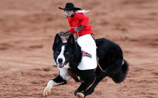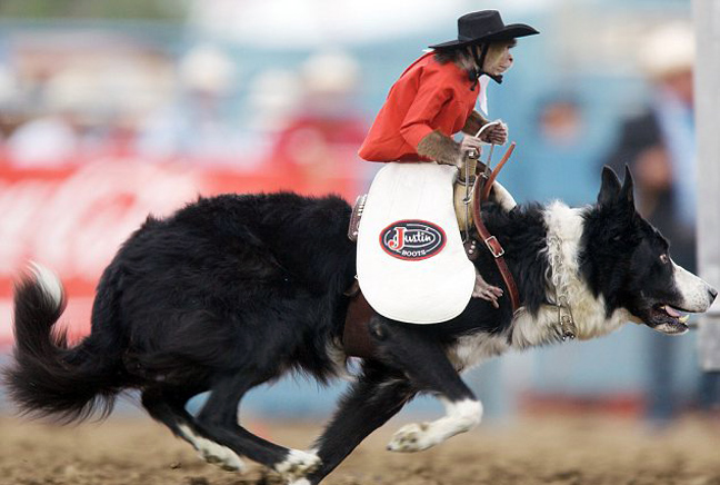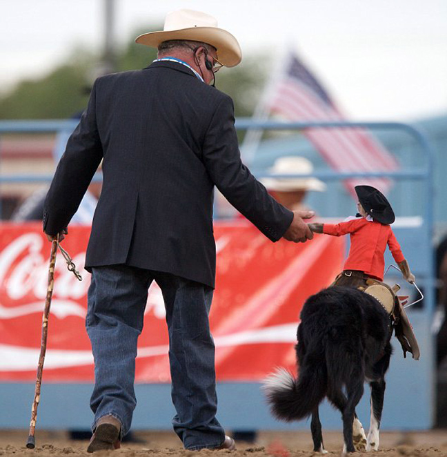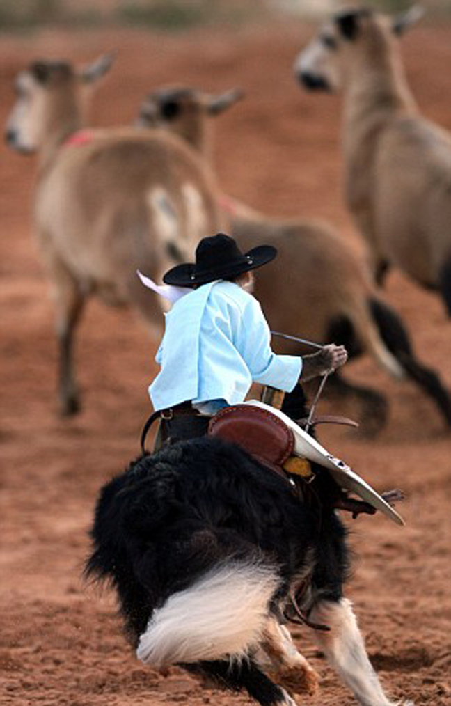 Αυτό το περίεργο ντουέτο έχει πολλούς θαυμαστές σε Ροντέο στη νοτιοδυτική Αμερική καθώς προσφέρει μοναδικό σόου κυνηγώντας πρόβατα!