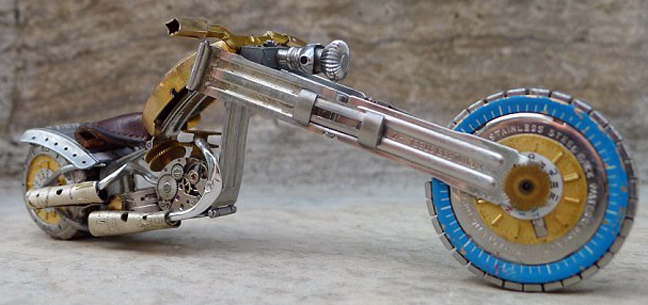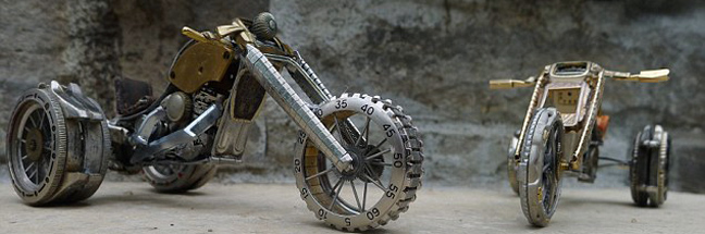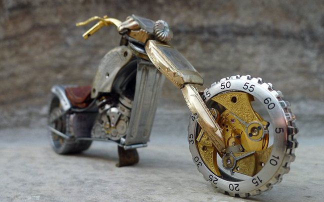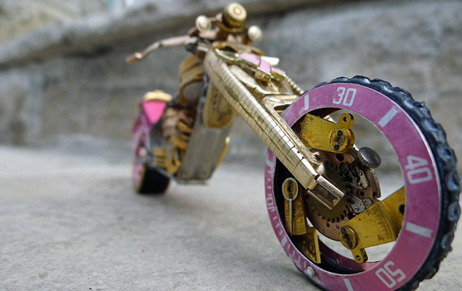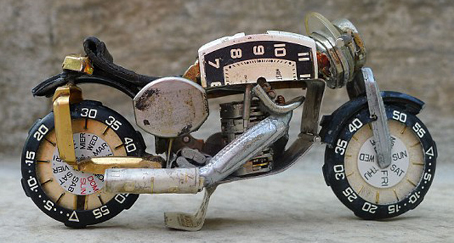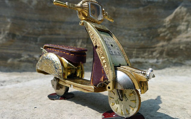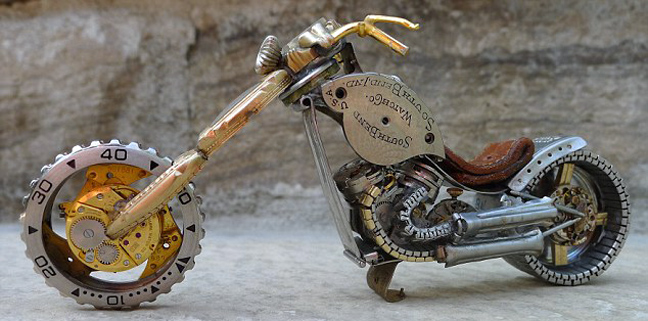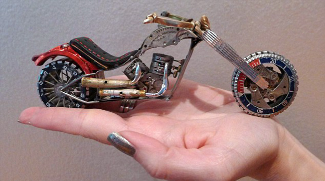 Οι μινιατούρες μηχανές-ρολόι ανήκουν στον καλλιτέχνη Dan Tanenbaum από το Τορόντο του Καναδά. Όλα τα μοντέλα έχουν φτιαχτεί από πολλά διαφορετικά κομμάτια από περισσότερα από 50 ρολόγια!