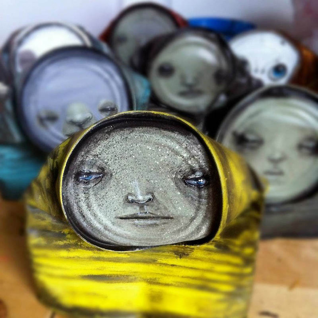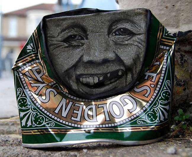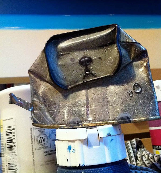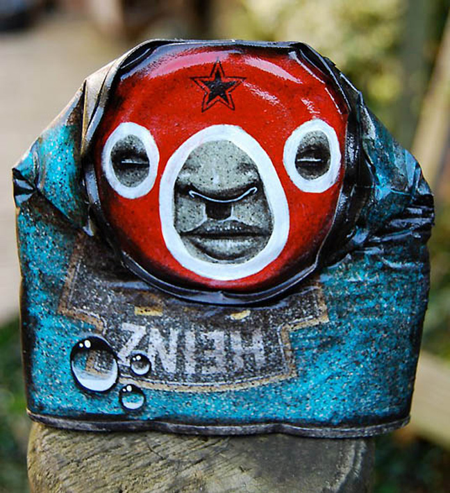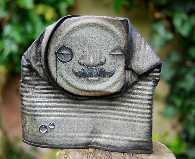 Πρόκειται για δημιουργίες ενός Βρετανού street artist με το ψευδώνυμο “My Dog Sighs, ο οποίος βρίσκει χρησιμοποιημένα τενεκεδάκια, τα ζωγραφίζει και στη συνέχεια τα αφήνει σε διάφορες τοποθεσίες της πόλης.