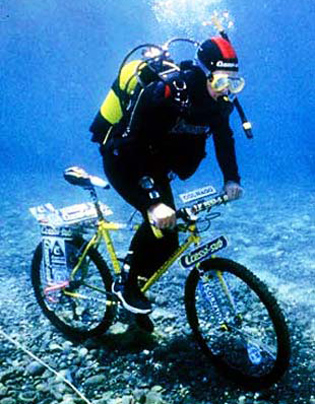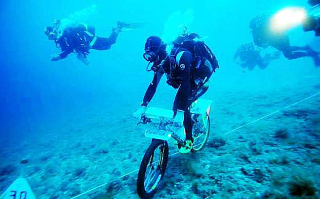 Το ρεκόρ στην υποβρύχια ποδηλασία κατάφερε να σπάσει ο Ιταλός Vittorio Innocente, ο οποίος διένυσε 65 μέτρα κάτω από τη Μεσόγειο Θάλασσα.