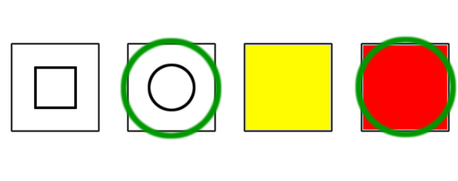 Δεν είναι αναγκαίο να γυρίσει την κάρτα με το κίτρινο επειδή δεν μας ενδιαφέρει ποιο σχήμα υπάρχει από την άλλη πλευρά – ο κανόνας δεν λέει ότι το κίτρινο πρέπει να συνδυαστεί αποκλειστικά με κύκλο, δηλώνει μόνον ότι αν υπάρχει κύκλος από τη μία πλευρά τότε πρέπει να υπάρχει κίτρινο από την άλλη.