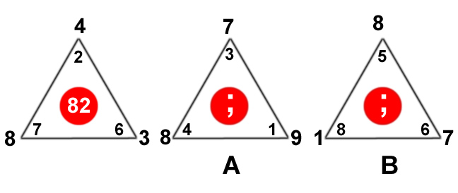 Πολλαπλασιάζουμε τα νούμερα που βρίσκονται στις ίδιες γωνίες και μετά προσθέτουμε τα τρία αποτελέσματα.
