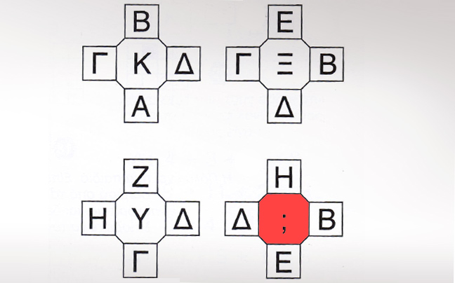 Χρησιμοποιώντας τον ίδιο κανόνα για όλα τα σχήματα, βρείτε το γράμμα που λείπει.