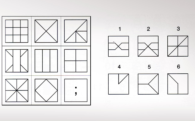 Ποιο από τα έξι αριθμημένα τετράγωνα συμπληρώνει τον πίνακα;