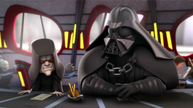 Οι μάχες αποτελούν πια παρελθόν και οι ήρωες του Πολέμου των Άστρων, από τον Han Solo μέχρι και τον Darth Vader, έχουν μια παιχνιδιάρικη διάθεση.