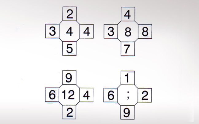 Συμπληρώνουμε τον αριθμό 6. Πολλαπλασιάζουμε τον πάνω με τον κάτω αριθμό και στη συνέχεια αυτούς που βρίσκονται αριστερά και δεξιά.