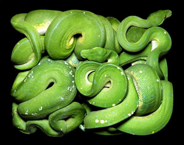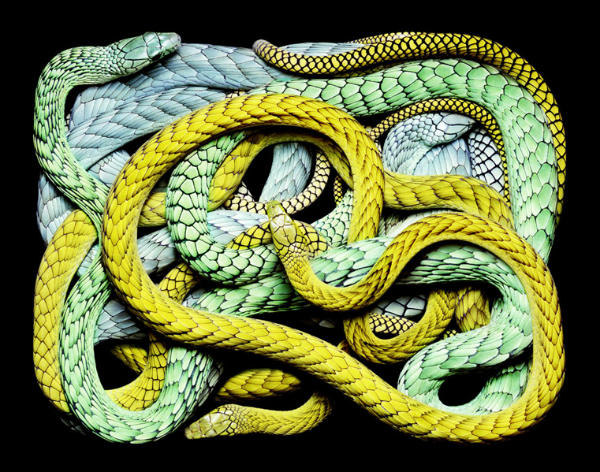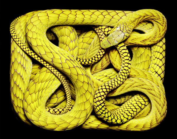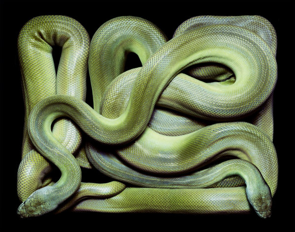 Ο Guido Mocafico, ο δημιουργός της φωτογραφικής αυτής σειράς, πήρε ένα μάτσο φίδια, τα έβαλε προσεκτικά σε ορθογώνια διαφανή κουτιά και με τον κατάλληλο φωτισμό και τεχνική λήψης, τσουπ, να σου το κονσεπτάκι…