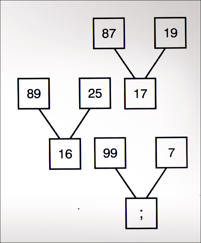 Λείπει ο αριθμός 23. Ο κάτω αριθμός είναι το ¼ της διαφοράς των δύο πάνω αριθμών.