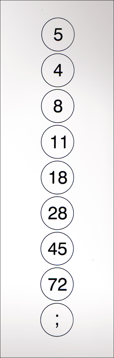 Ολοκληρώνεται με τον αριθμό 116. Προσθέτουμε σε κάθε αριθμό τον επόμενό του και αφαιρούμε 1.