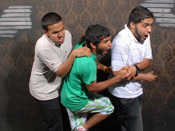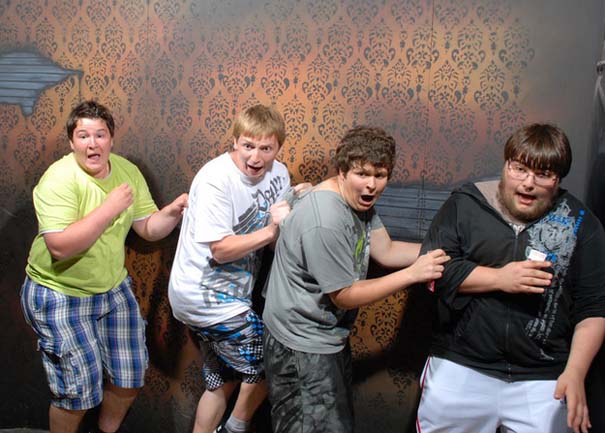 Πρόκειται για φωτογραφίες από το «Nightmares Fear Factory» που βρίσκεται στο Niagara Falls του Καναδά. Οι τρομοκρατημένες αντιδράσεις των ανδρών καταγράφονται από κρυφές κάμερες.