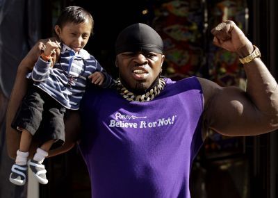 Ο νέος μικρότερος γνωστός άνθρωπος στην γη, Καγκέντρα Θάπα Μαγκάρ από το Νεπάλ (ο προηγούμενος, ο Χε Πινγκπινγκ απεβίωσε σχετικά πρόσφατα) φωτογραφίζεται με τον Άντριου “Tiny Iron” Χάρισον, ο οποίος είναι ο άνδρας με τους μεγαλύτερους δικέφαλους μύες στην Βρετανία.