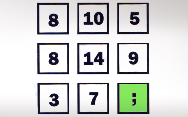 Κρύβεται ο αριθμός 7. Προσθέτουμε τους αριθμούς που βρίσκονται στο πρώτο και τρίτο κουτί σε κάθε γραμμή και στήλη. Από το άθροισμά τους αφαιρούμε τον αριθμό 3 και παίρνουμε τον αριθμό που βρίσκεται στο μεσαίο κουτί.