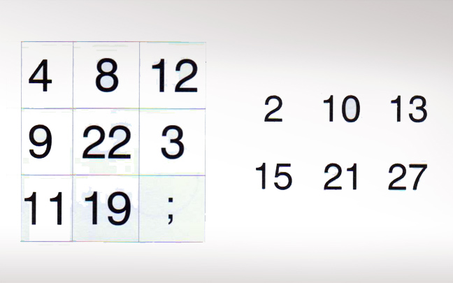 Είναι ο αριθμός 15. Όταν γράφουμε τους αριθμούς που βρίσκονται στην ίδια γραμμή σε λατινική μορφή, ο αριθμός των ευθύγραμμων τμημάτων που χρησιμοποιούνται είναι δώδεκα.