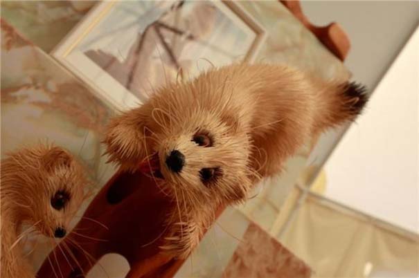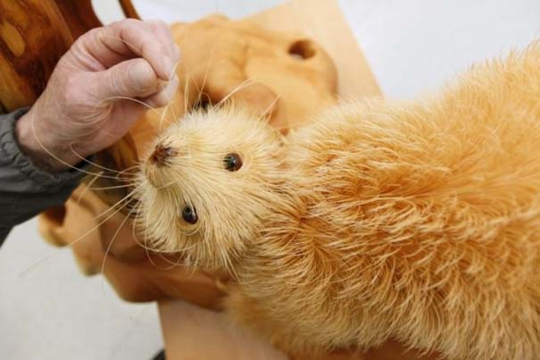 Αρχικά συλλέγει τα υλικά και στη συνέχεια ξεκινάει τη λεπτομερή μετατροπή τους σε ομοιώματα των αγαπημένων του ζώων.