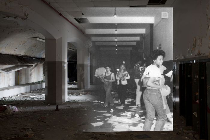 Με ένα εντυπωσιακό κολάζ φωτογραφιών θέλησαν να δείξουν το τότε και το τώρα ενός εγκαταλελειμμένου σχολείου στο Detroit.