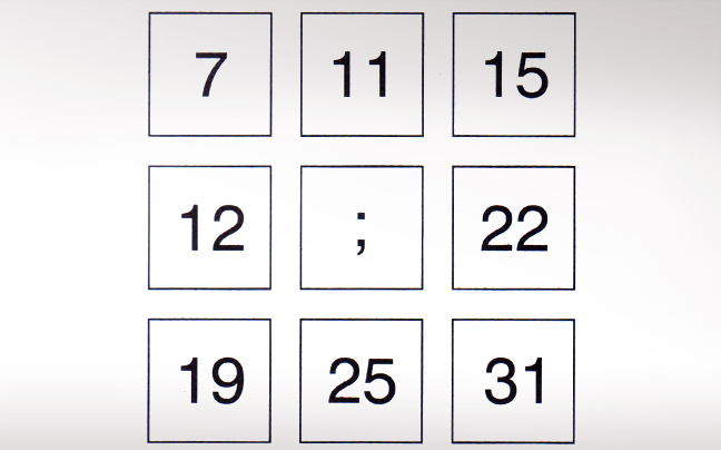 Λείπει ο αριθμός 17. Οι αριθμοί στην 1η γραμμή αυξάνονται κατά 4, στη 2η κατά 5 και στην 3η κατά 6.