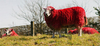 Οι περαστικοί εντυπωσιάστηκαν από το θέαμα, τα πρόβατα έγιναν ατραξιόν κι έτσι ο Τζακ αποφάσισε να προσθέσει ακόμα περισσότερο χρώμα! Έτσι έβαψε τα μισά κόκκινα. Χρησιμοποιεί φάβες φιλικές προς τα ζώα και τα συντηρεί έτσι μέχρι να έρθει η ώρα του κουρέματος.