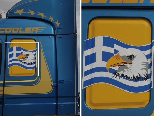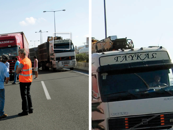 Οι πιο χαρακτηριστικές γραφιστικές λεπτομέρειες πάνω στα διαμαρτυρόμενα φορτηγά.